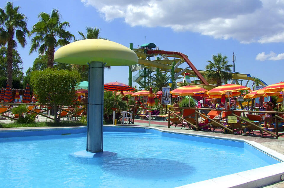 Gli scivoli d’acqua non solo le uniche attrazioni del parco acquatico, ci sono tantissime aree dedicate ai più piccoli, zone relax con solarium, punti ristoro e la discoteca. Inoltre, per tutta la durata della stagione estiva, non mancano gli eventi quotidiani, con tanto di animazione e schiuma party.