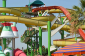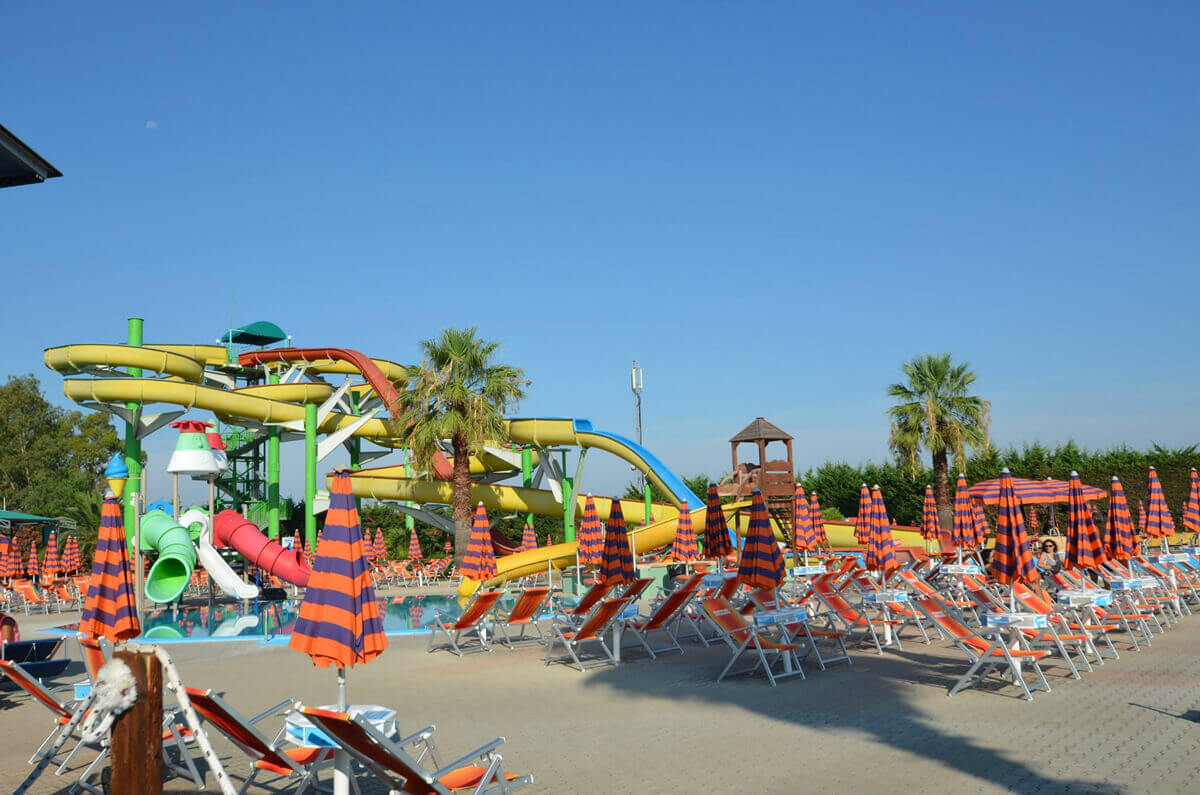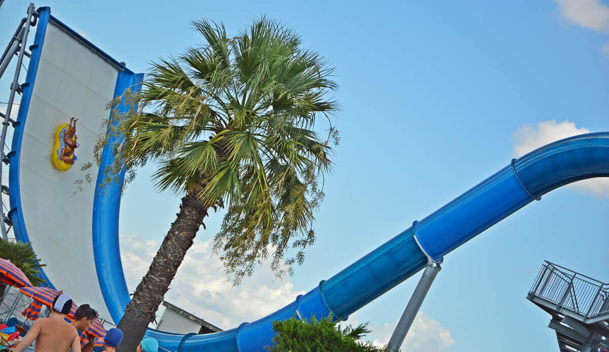 Gli scivoli d’acqua sono le attrazioni principali del parco acquatico. Lunghi fino a 150 metri e percorribili con gommone, ciambella o semplicemente da seduti.