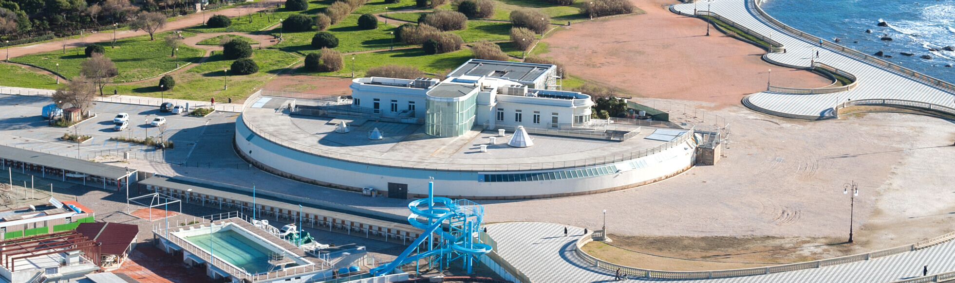 Scendi alla stazione di Livorno Centrale e prendi il bus n°1 in direzione Miramare. Scendi alla fermata Viale Italia – Terrazza Mascagni.