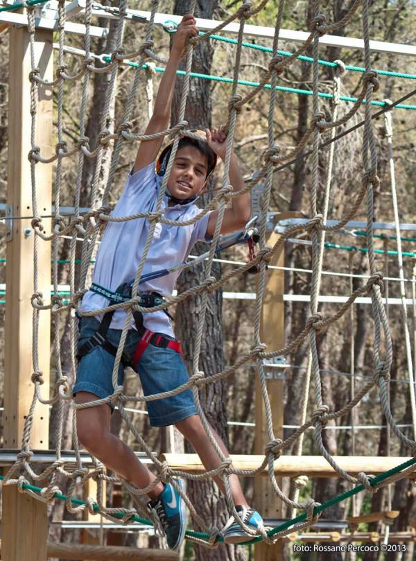 - Percorso Scoiattolo: Un tracciato basso (circa 1 metro da terra) perfetto per i primi passi con i moschettoni. Include tunnel di rete e passerelle stabili.