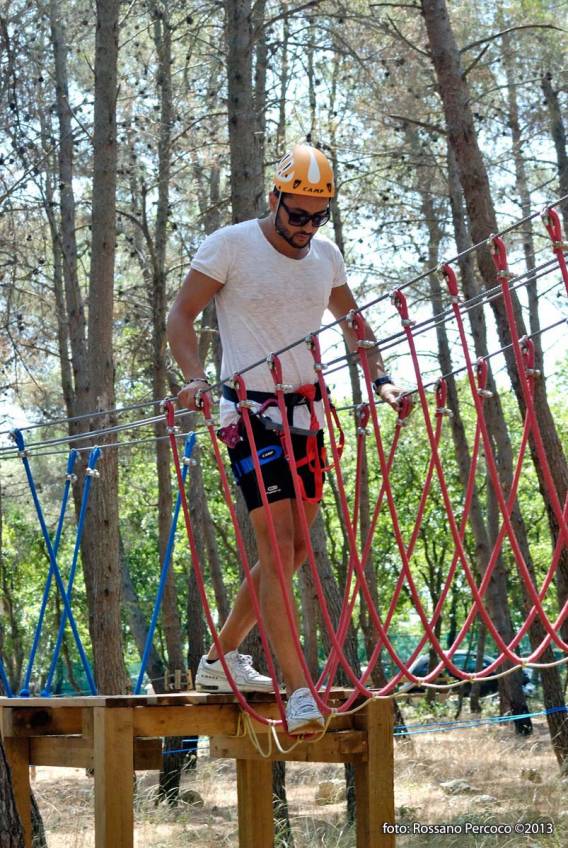 - Percorso Blu (Emotion): La difficoltà sale, con passaggi a 6-8 metri da terra. Richiede equilibrio su cavi d’acciaio e reti verticali.