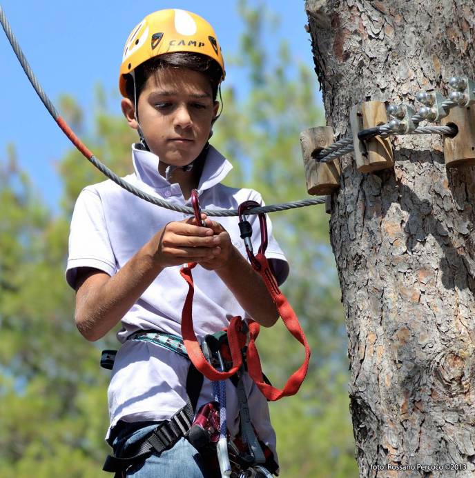 - Percorso Rosso (Adrenaline): Per chi non soffre di vertigini. Si sale fino a 10-12 metri tra le chiome degli alberi più alti del Parco di San Grato.