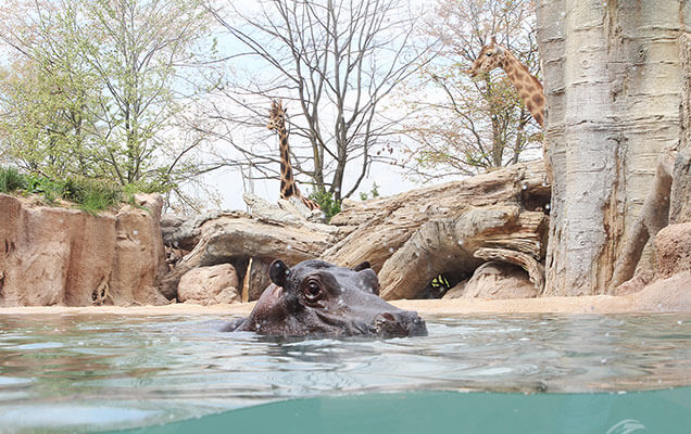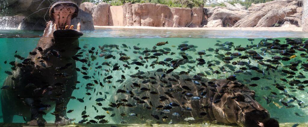 - Ippopotami: Protagonisti dell’habitat “Hippo Underwater”, dove una grande vetrata permette di vederli nuotare con sorprendente agilità.