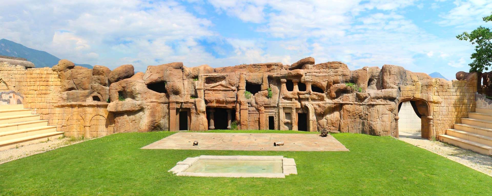 Non ci sono giostre meccaniche. Le “attrazioni” sono le piscine scenografiche (ingresso con biglietto extra o combo):