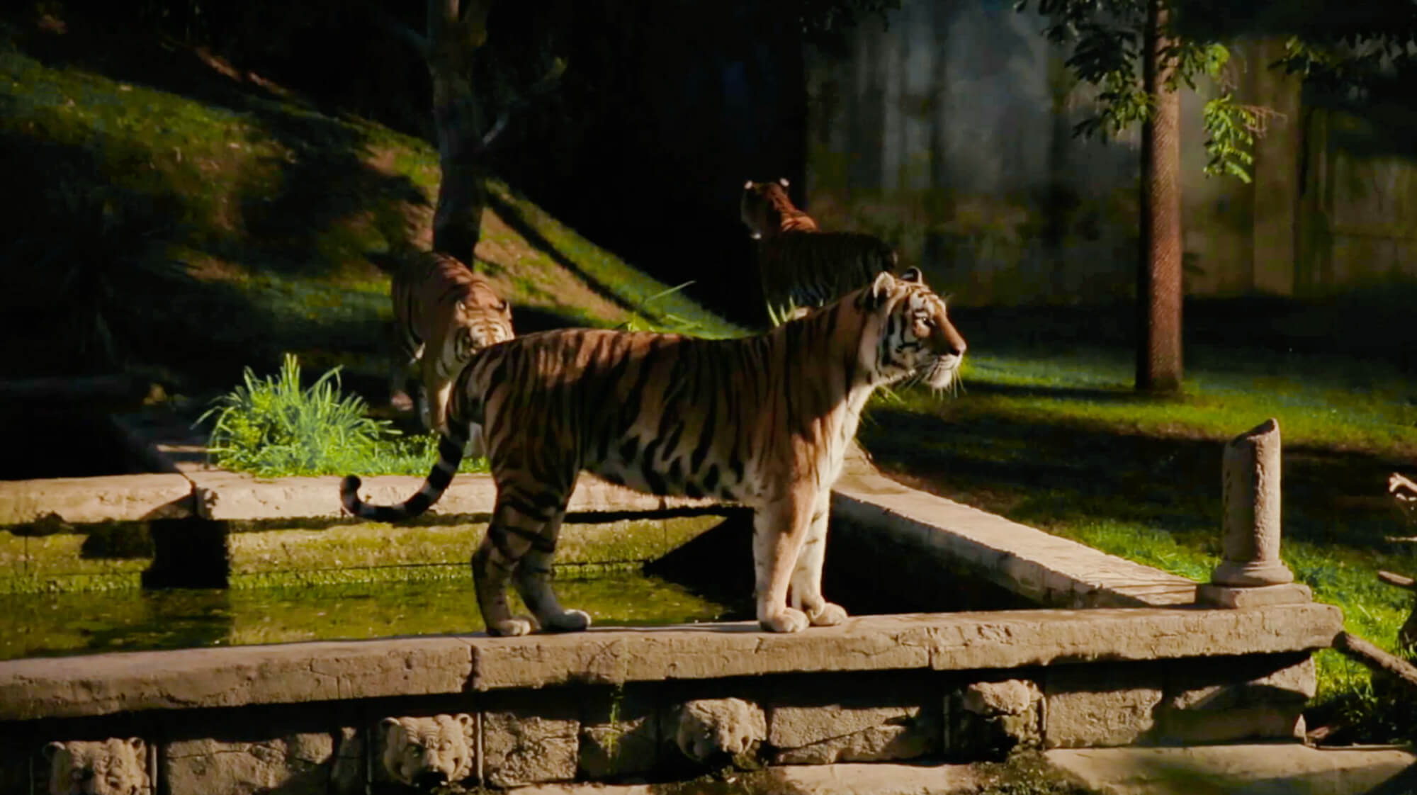 - Tigri: Ospitate in un tempio in rovina che ricrea le giungle asiatiche.