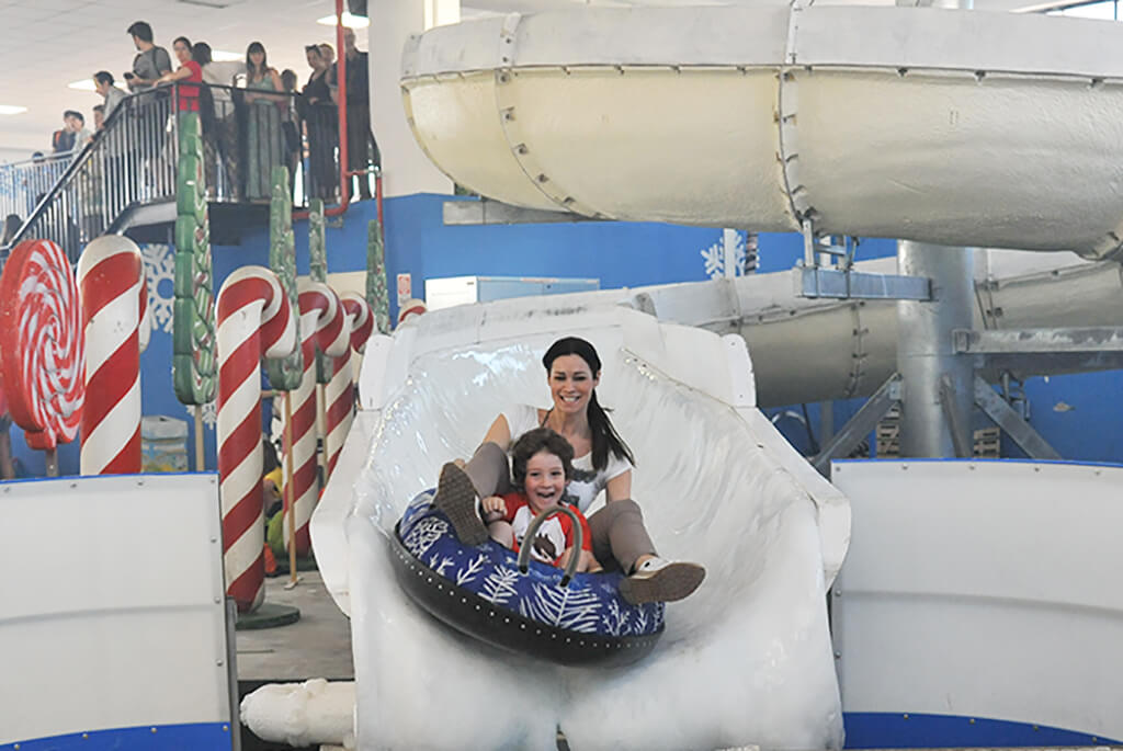 Un’area tematica unica nel suo genere, dove vivere l’atmosfera dell’inverno tutto l’anno. Un gigantesco capannone per giocare con la neve senza avere freddo.