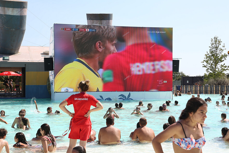 • Animazione Cinepiscina. Musica, animazione e balli di gruppo nell’area acquatica del parco a tema.