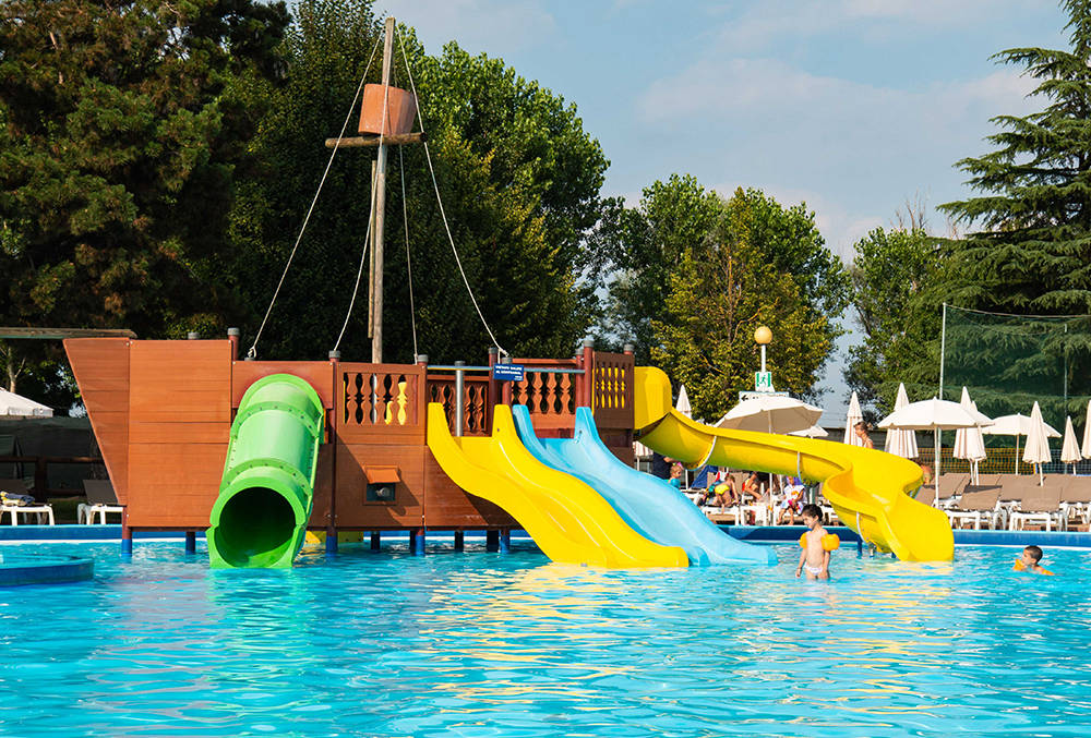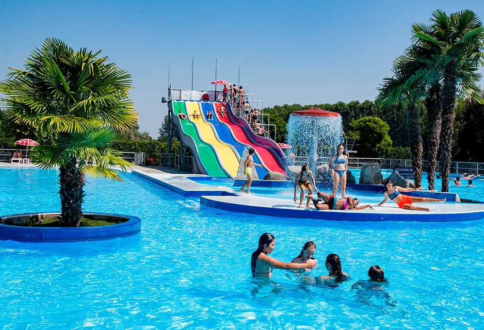 - Sliding Hill: Un multipista morbido e ondulato per sfide di velocità formato famiglia. Chi arriverà primo in acqua?.