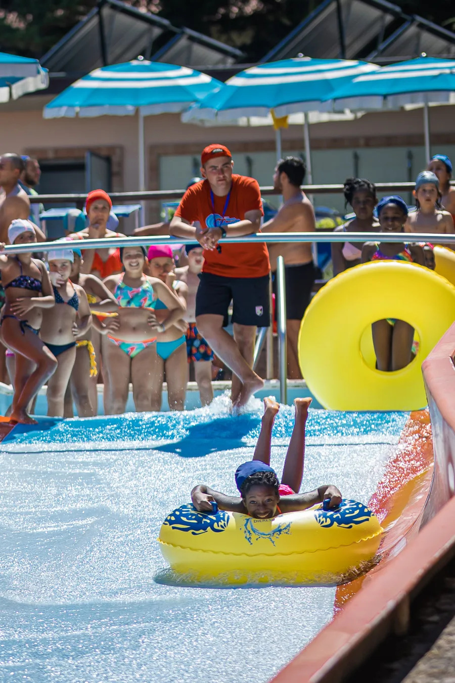 - Titania: Uno scivolo maestoso e imponente, dove si affrontano curve e discese imprevedibili su gommoni multipli. Un gigante buono che sa come emozionare.