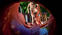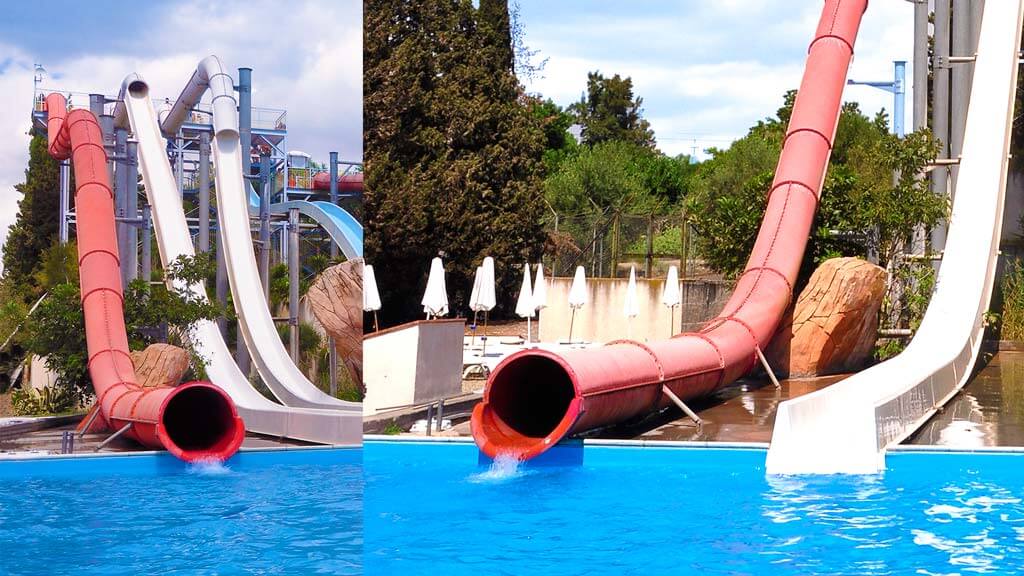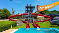 - Super Red Cannon. Una coppia di scivoli simmetrici rosso fuoco, dove si scende da 16 metri di altezza, tra spirali e ripide discese.