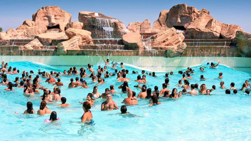 - Piscina a Onde. Un enorme piscina con otto differenti tipi di onde, dotata di chioschi, lettini e ombrelloni.
