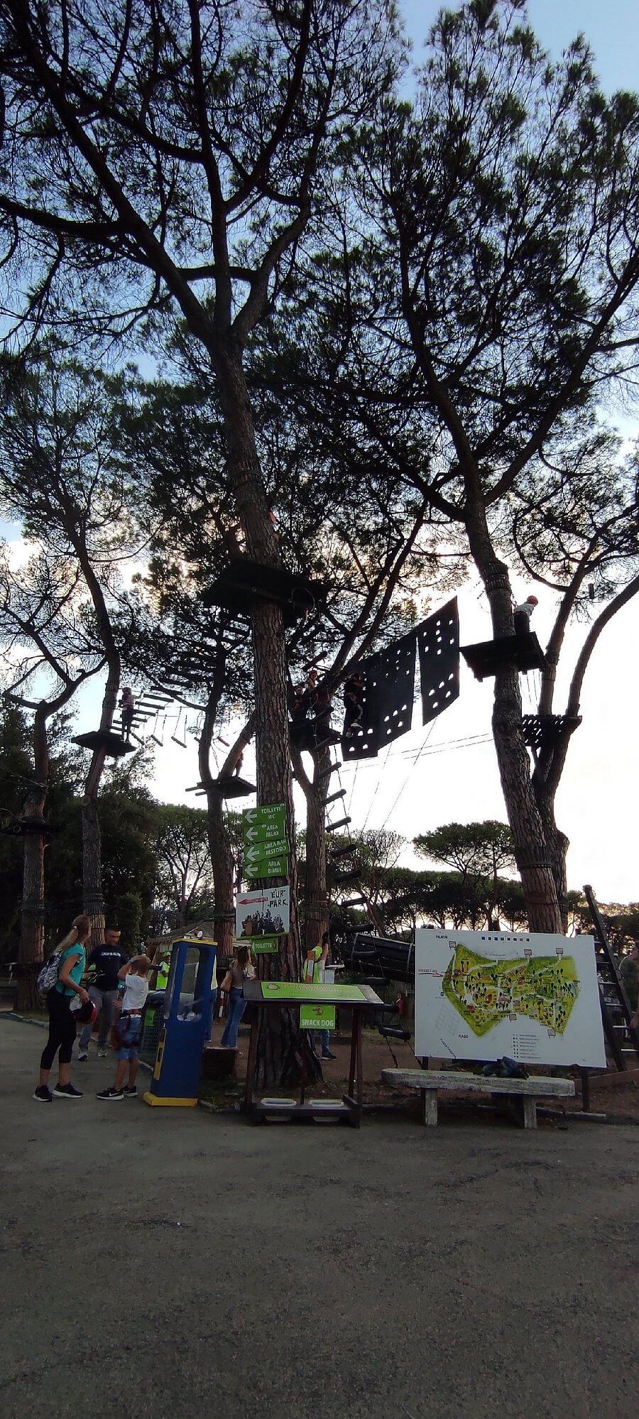 - TreeTop Adventure Adulti: Altri 7 percorsi tecnici che si sviluppano fino a 8 metri di altezza tra le chiome dei pini, con passaggi su tronchi oscillanti e teleferiche.