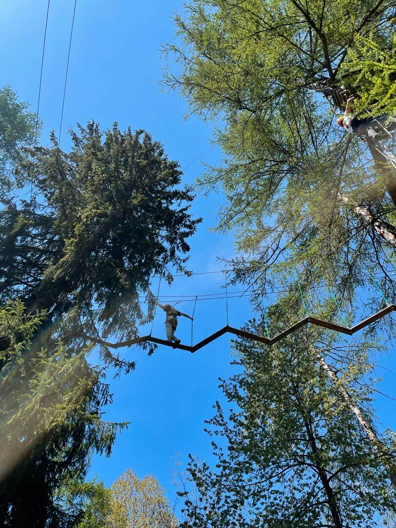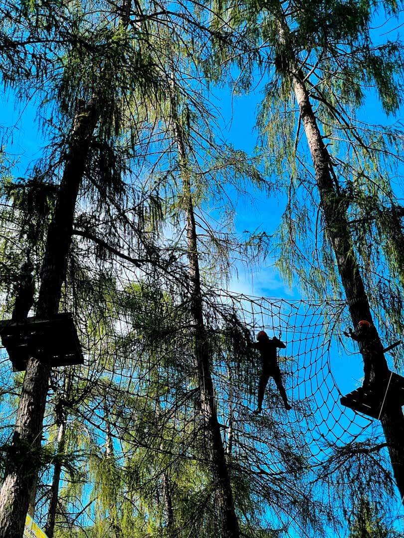 Per chi cerca l’adrenalina, il Flying Park offre sfide di alto livello che arrivano a sfiorare i 20 metri d’altezza: