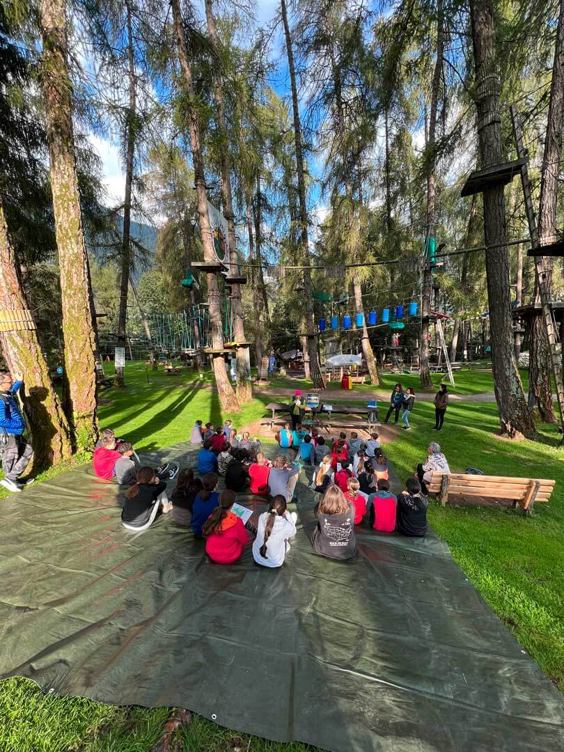 Le gite scolastiche qui sono un mix di educazione fisica e ambientale. I percorsi avventura, uniti all’orienteering, stimolano la coordinazione e il rispetto per la natura.