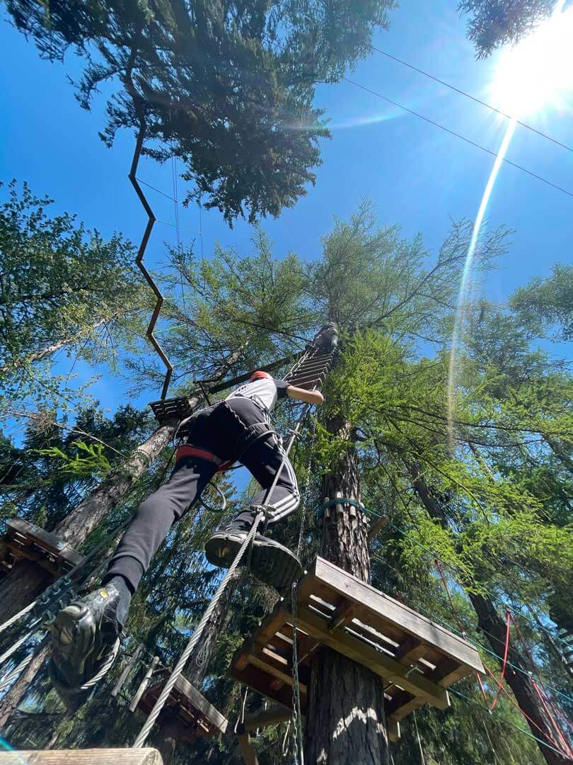 Benvenuti al Flying Park, il parco avventura più grande del Trentino, situato a Malé, nella splendida cornice della Val di Sole. Immerso in un bosco rigoglioso lungo le rive del torrente Noce, questo parco è un punto di riferimento per chi cerca emozioni forti e contatto autentico con la natura. Con oltre 180 passaggi attrezzati sospesi tra gli alberi, offre un’esperienza dinamica e coinvolgente per ogni età.