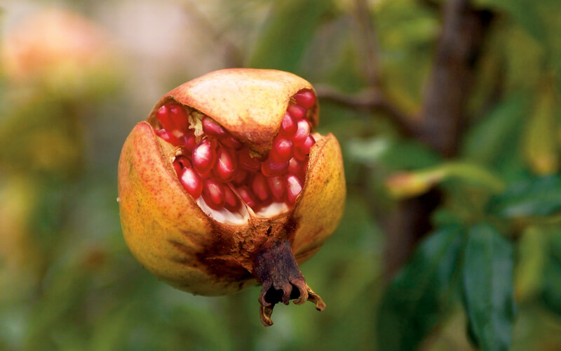 Nella stagione autunnale le piante sempre verdi risaltano rispetto allo sfondo colorato dai frutti mediterranei, come: gli uliveti, i fichi, le vigne e il melograno.