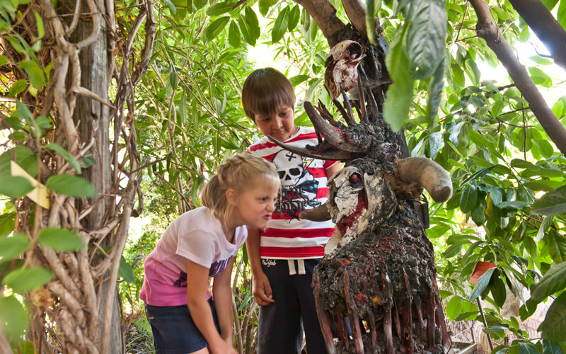 All’interno del giardino sono presenti 10 padiglioni artistici, dove arte, cultura e natura si fondono per stimolare nel visitatore tutti i sensi, come le sculture gigantesche di insetti realizzati fino ai minimi particolari dallo scultore e studioso Lorenzo Possenti.