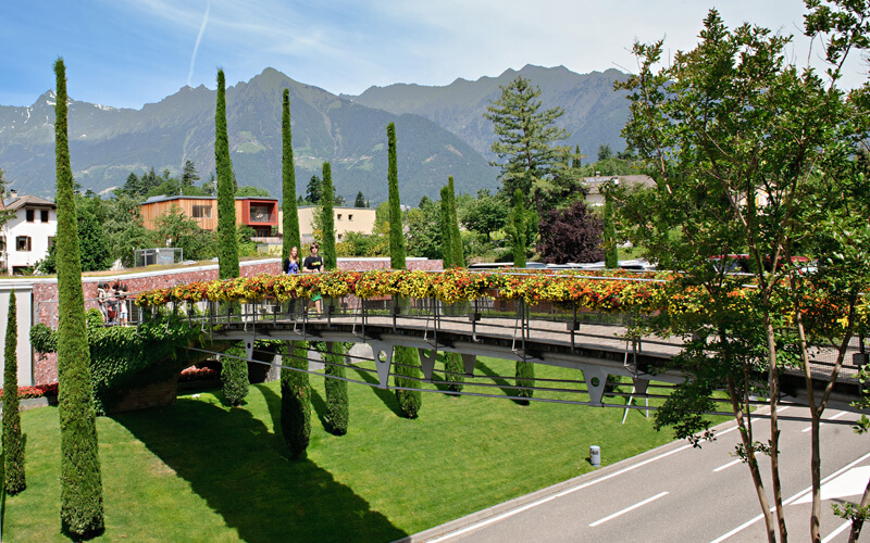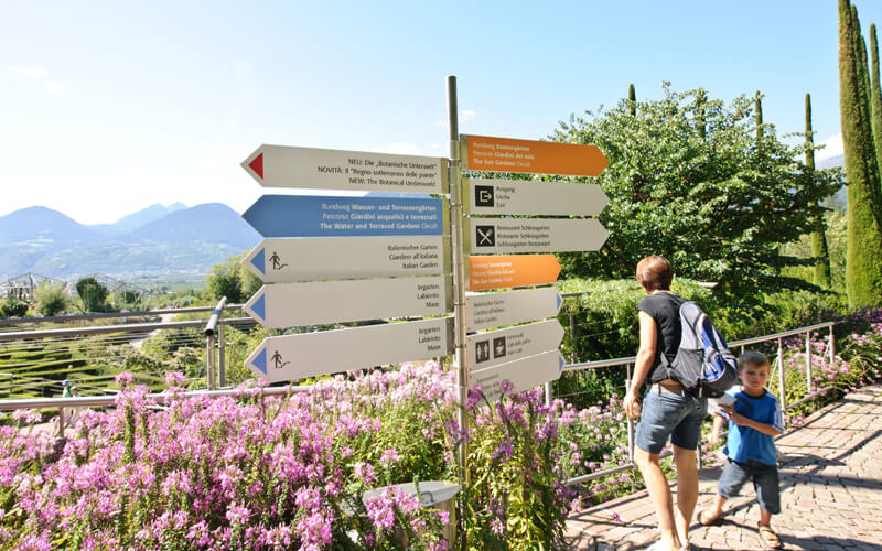 Nei dodici ettari di verde di natura incontaminata è possibile osservare: paesaggi esotici e panorami con vedute incantevoli su Merano e d’intorni. Il visitatore può esplorare gli 80 ambienti botanici allestiti da paesaggisti e architetti provenienti da tutto il mondo.