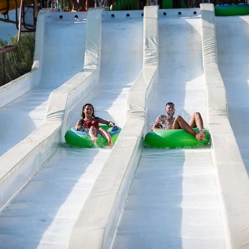 - Multipista: Quattro corsie parallele per sfidare gli amici in una gara di velocità con i gommoni. Chi arriverà primo allo splash finale?.