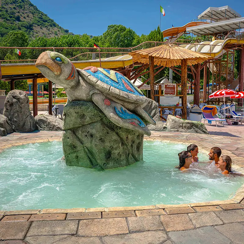 - Spray Park: Un’area interattiva con getti d’acqua improvvisi per rinfrescarsi ridendo, perfetta per i pomeriggi più caldi.