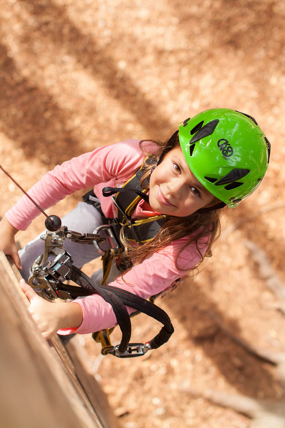• Taka-Tuka: (2,5-6 anni). Situato a 1,5 metri d’altezza, protetto da reti. I bambini lo affrontano senza imbrago (solo casco), seguiti dai genitori da terra. Include una mini teleferica finale!