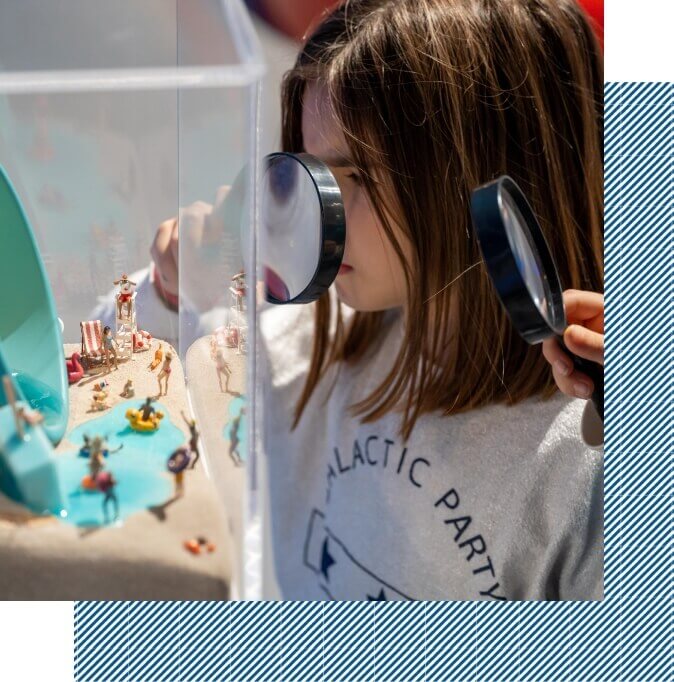 Un mondo di suoni e vibrazioni. In questa zona i ragazzi possono giocare con onde sonore, tubi parlanti e strumenti curiosi, capendo come viaggia il suono e come le nostre orecchie percepiscono la musica e i rumori dell’ambiente circostante.