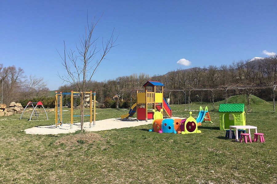 Al termine del percorso didattico è presente una zona ludica con scivoli, altalene e casette, pensata per far sfogare i bambini più piccoli dopo la camminata.