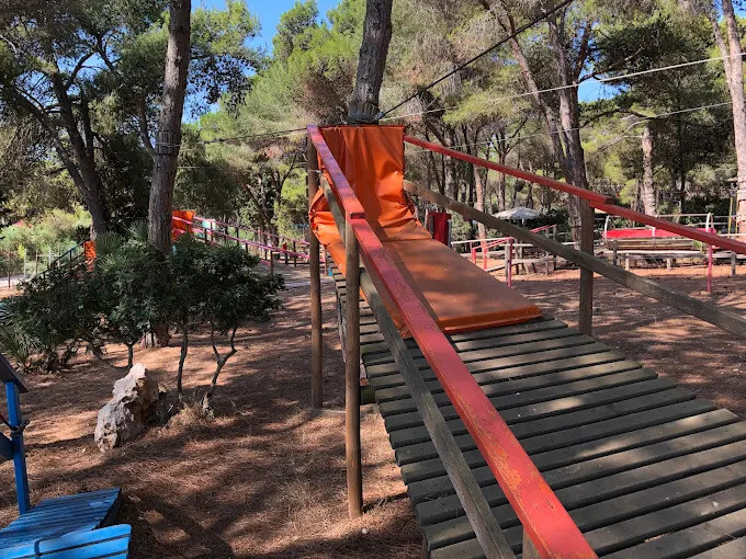 - Percorso Azzurro: Un po’ più lungo (7 piazzole), include passaggi su altalene e funghetti sospesi che stimolano l’equilibrio.