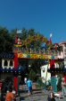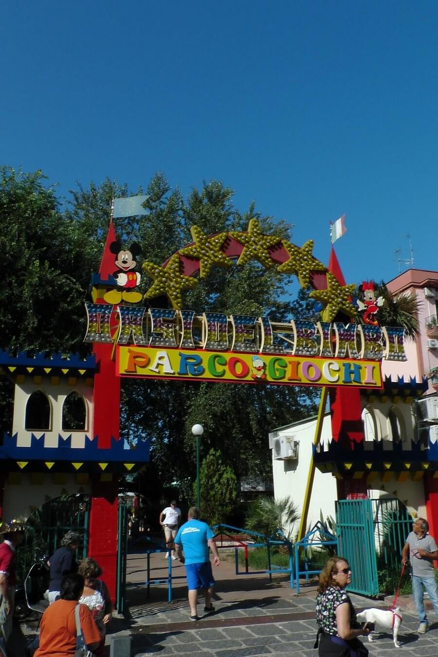 Il cuore colorato del parco. Qui si concentrano le attrazioni meccaniche dedicate ai più piccoli. Pavimentazione spesso anti-trauma e spazi delimitati per garantire la sicurezza dei bimbi che corrono da una giostra all’altra.