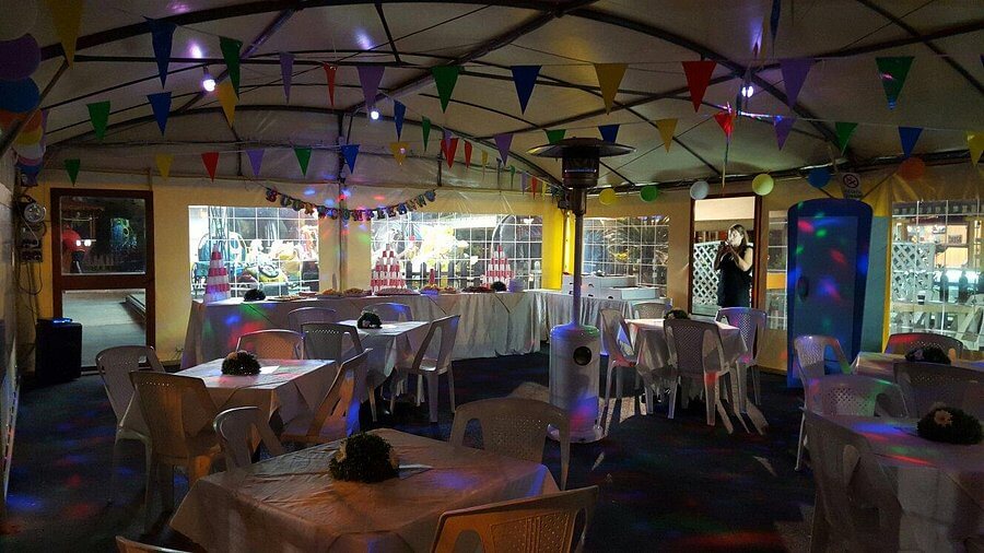 Zone coperte e gazebo allestiti per ospitare feste di compleanno private. Quest’area è attrezzata con tavoli e sedie e si trova in posizione strategica per permettere ai genitori di sorvegliare i bambini sulle giostre.