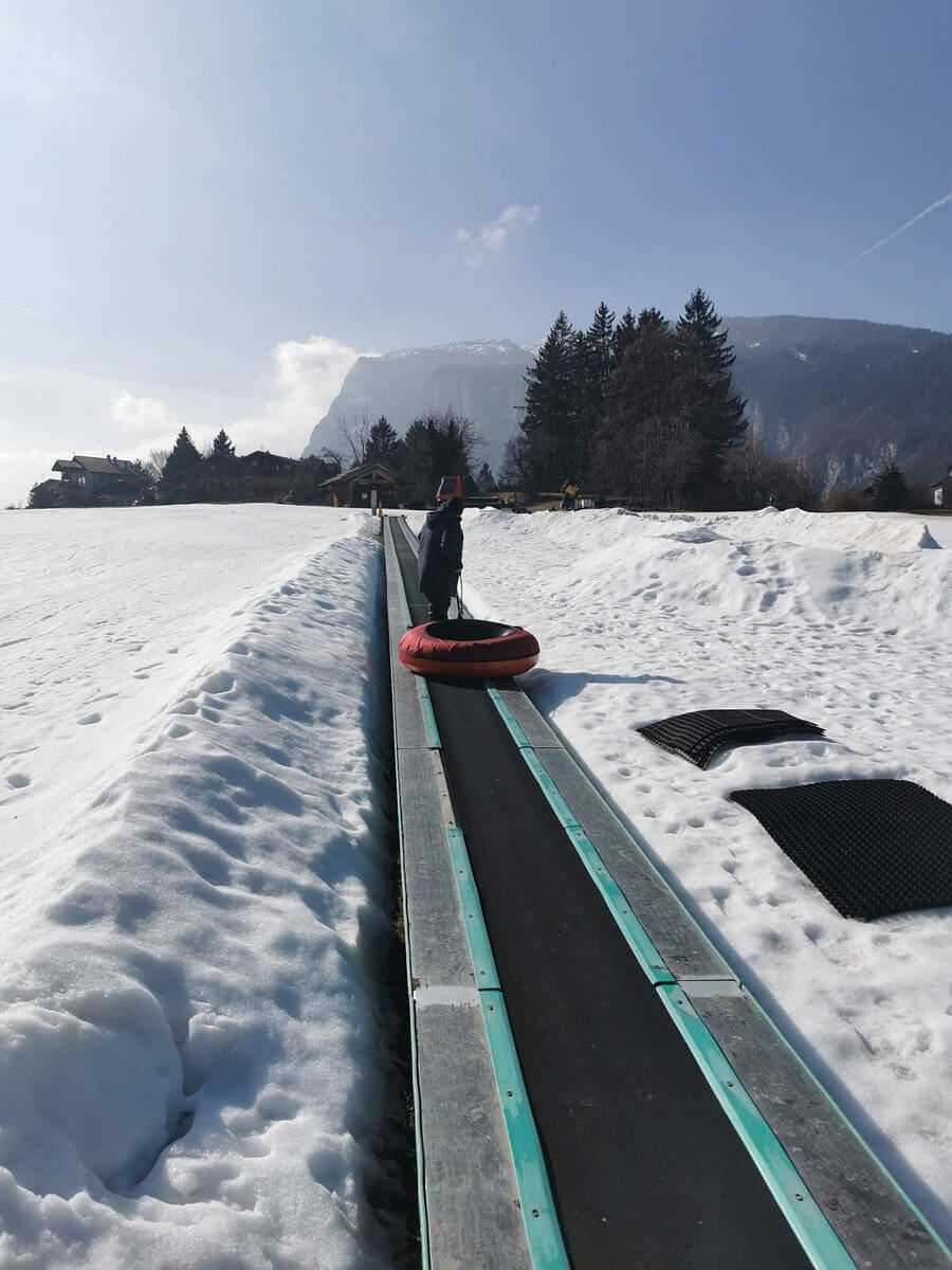 È la zona più ampia e dinamica. Qui si trovano le piste battute per scendere con i gommoni (snowtubing), che ruotano e scivolano veloci, e le corsie dedicate a bob e slittini. Grazie al tapis roulant laterale, si può risalire senza fatica infinite volte.