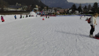 Una zona pianeggiante e recintata dedicata ai “primi passi” sulla neve. Qui i bambini (anche sotto i 3-4 anni) possono giocare con pupazzi di gomma, palette, secchielli e scatenarsi su enormi scivoli gonfiabili colorati, in totale sicurezza lontano dalle discese veloci.