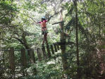 - Percorsi Aquilotto e Lupetto (Verde): Per bambini un po’ più grandi (min. 140 cm al polso alzato). Offrono ostacoli che stimolano l’equilibrio e la coordinazione, come ponti di rete e piccole teleferiche.