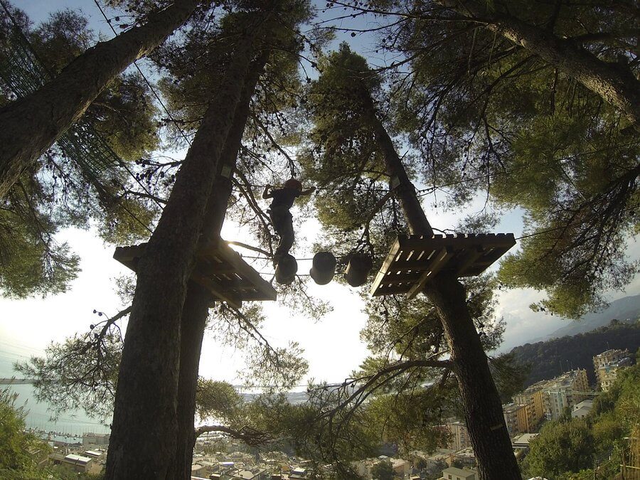Il Parco Avventura Pegli (conosciuto anche come Vettapark) è una gemma nascosta sulle alture di Genova Ponente, situato nella storica e panoramica località della Vetta di Pegli. A soli 5 minuti dall’uscita autostradale di Genova Pegli, questo parco offre un’esperienza unica: arrampicarsi tra gli alberi godendo di una vista mozzafiato che spazia dal porto di Genova fino al promontorio di Portofino. Immerso in un bosco che ospita anche bunker storici della Seconda Guerra Mondiale, unisce natura, storia e adrenalina in un unico luogo.