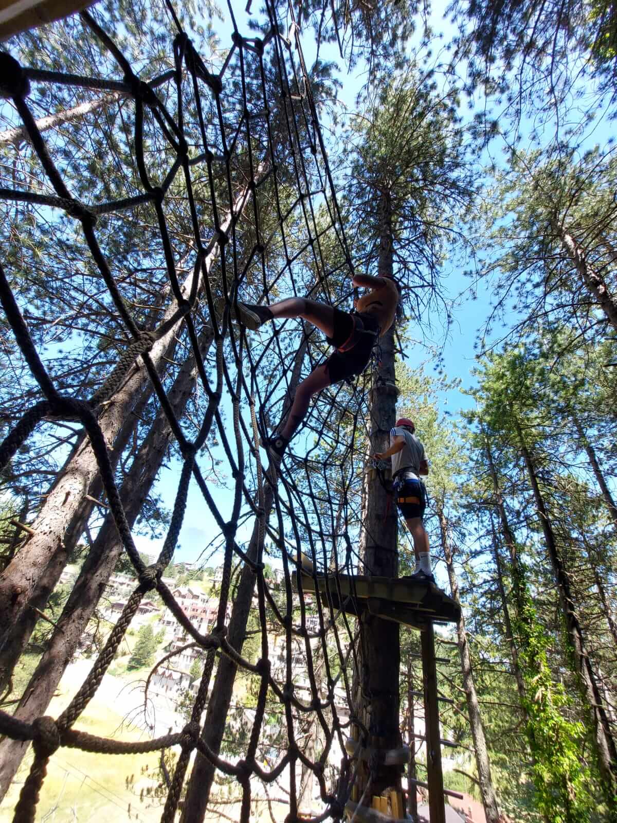 - Percorso Verde: Il livello base, pensato per i bambini (generalmente dai 3-6 anni o altezza minima specifica). Situato a bassa quota, permette ai piccoli di prendere confidenza con l’equilibrio attraverso passerelle e piccoli ostacoli, sempre sotto lo sguardo dei genitori.