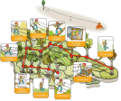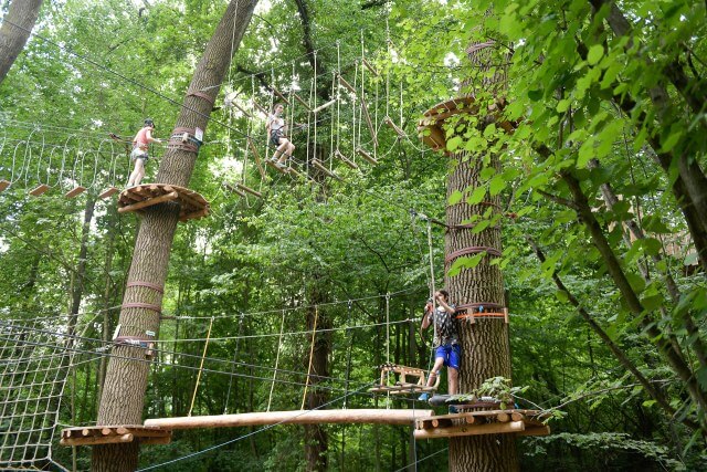 Il parco dispone di 9 percorsi avventura e oltre 80 giochi aerei, suddivisi per età e altezza: