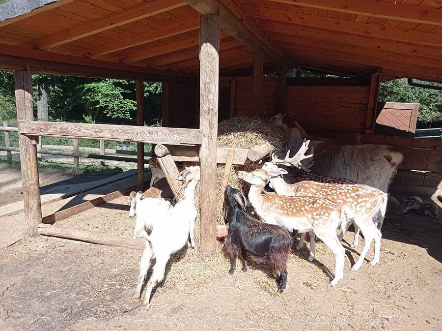 - La Fattoria (Area Contatto): È la zona più amata dai bambini. Qui non ci sono gabbie: daini, lama, alpaca, caprette tibetane e pecore vivono liberi in un grande recinto dove i visitatori possono entrare, passeggiare tra loro e accarezzarli.