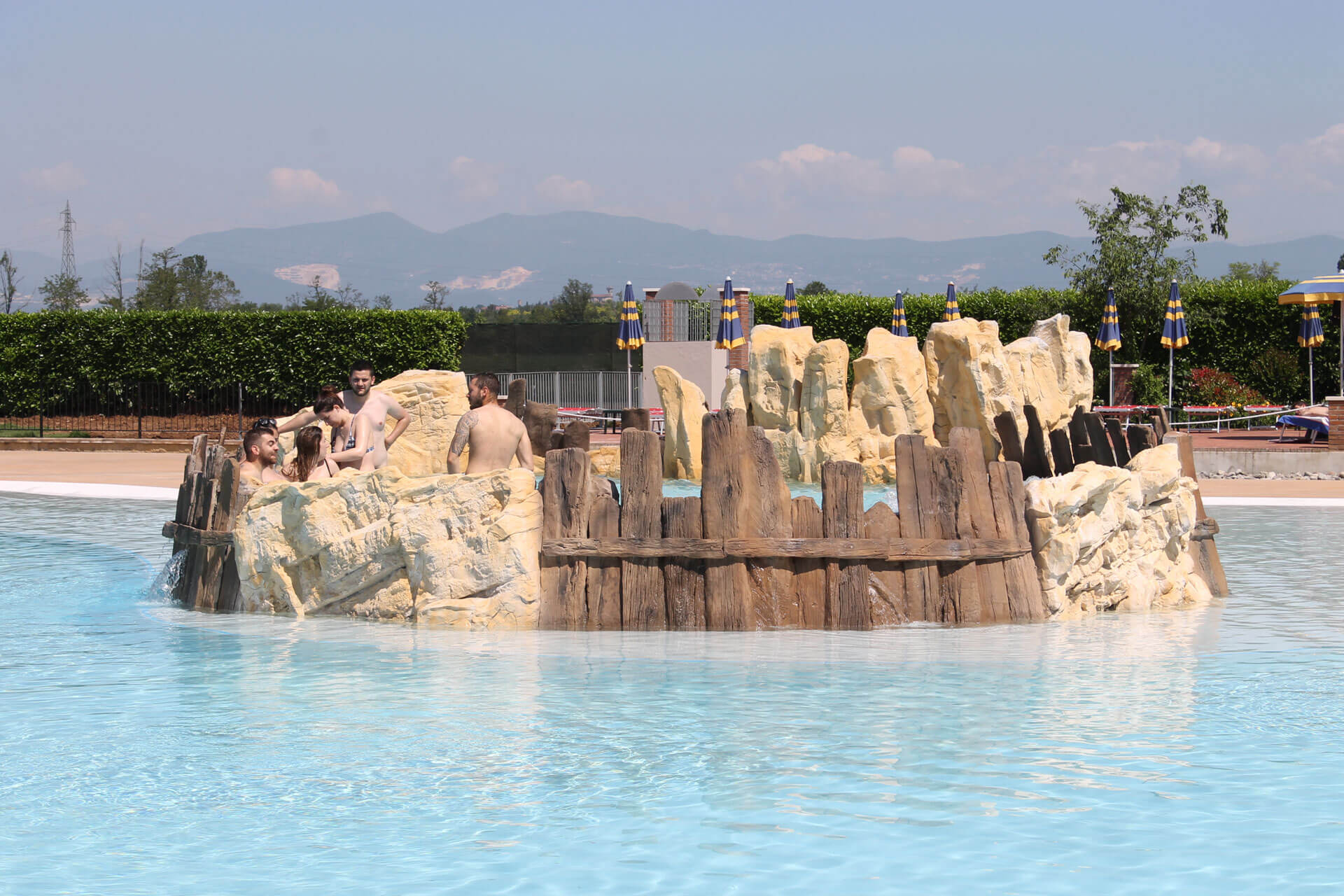 - Solarium Acquatico: Un’ampia zona con acqua bassa dove prendere il sole stando freschi, letteralmente sdraiati nell’acqua.