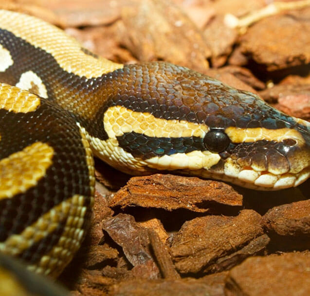 • Pitone reale. O conosciuto anche con il nome di pitone palla, perché quando si sente minacciato arrotola il suo corpo e nasconde la sua testa all’interno.