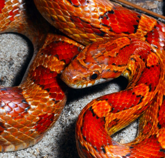 • Serpente del grano. È uno dei serpenti più diffusi negli Stati Uniti. Le sotto specie sono 4 e prendono il nome delle zone in cui vivono.