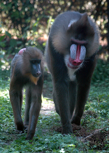 • Mandrillo. Una delle poche specie al mondo, dove maschio e femmina sono molto diversi tra loro. Il maschio si caratterizza per un rigonfiamento sul naso, mentre le femmine sono più piccole di quasi un terzo e presentano tratti più fini. I mandrilli vivono nelle foreste pluviali dell’Africa e passano tutta la giornata alla ricerca di semi e frutta.