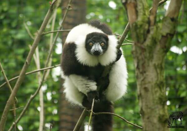 • Lemure variegato. La specie a rischio d’estinzioni a causa della continua deforestazione. Si caratterizza per il pelo morbido di colore nero e bianco. La femmina, prima del parto, si strappa i peli per imbottire il nido.