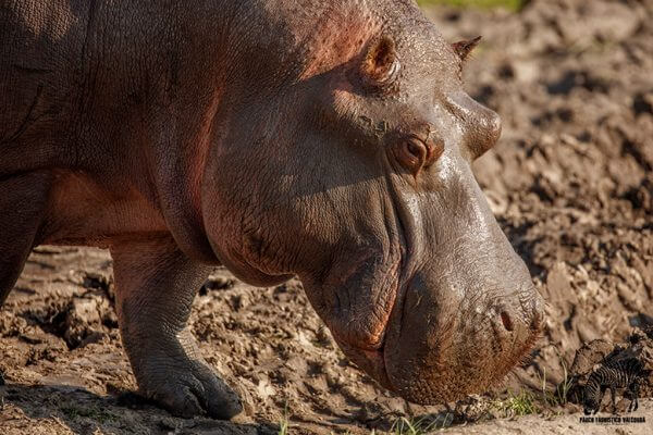 • Ippopotamo. È uno degli animali più aggressivi per via della forte territorialità. Durante il giorno rimane sulla superfice dell’acqua e può tenere il respiro fino a 7 minuti. Di notte di sposta sulla terra ferma per mangiare. In una sola notte è in grado di divorare fino a 40 chili di erba.