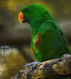 • È una specie poligama in grado di vivere per quasi 35 anni. La femmina si distingue per un piumaggio rosso, mentre il maschio è di colore verde.