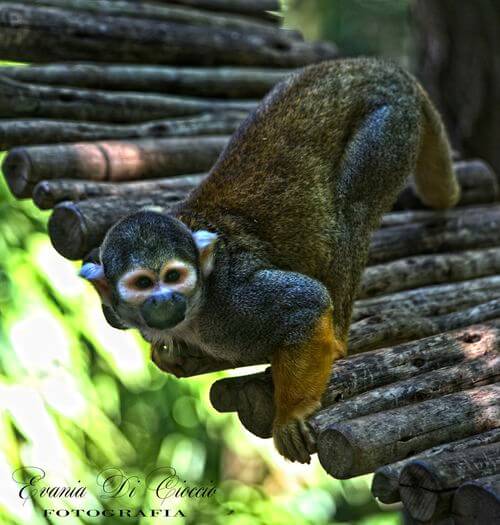 - Saimiri. I Saimiri sono conosciti anche con il nome di Scimmie sdogliatolo si caratterizzano per il colore del pelo verde oliva e arancio. Le loro dimensioni variano dai 60 ai 70 centimetri con la coda più lungo di tutto il resto del corpo. Le femmine hanno uno pseudo peno con la quale manifestano la loro dominanza nei confronti con i subordinati.