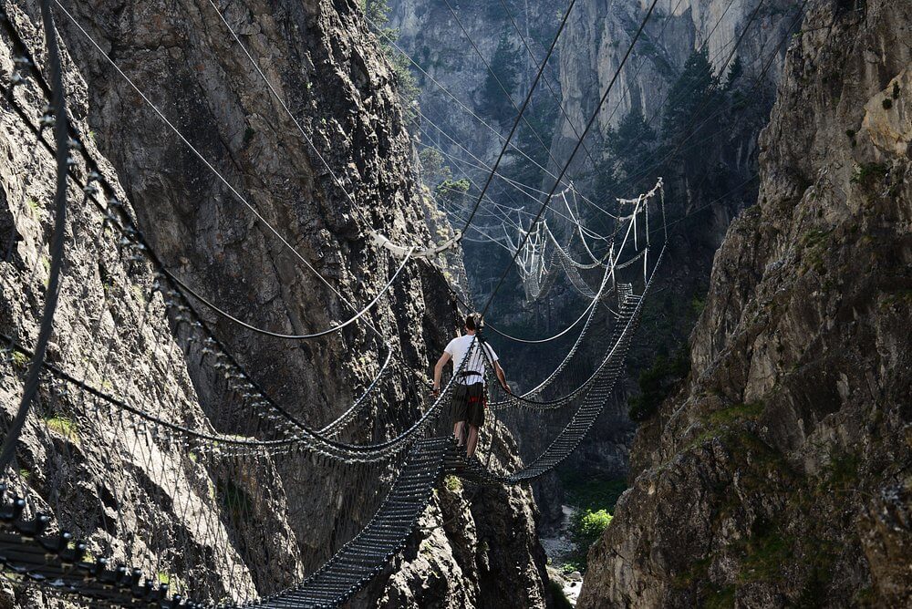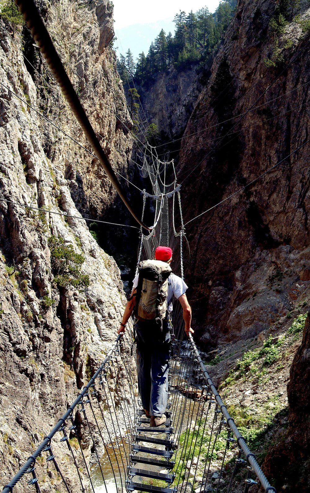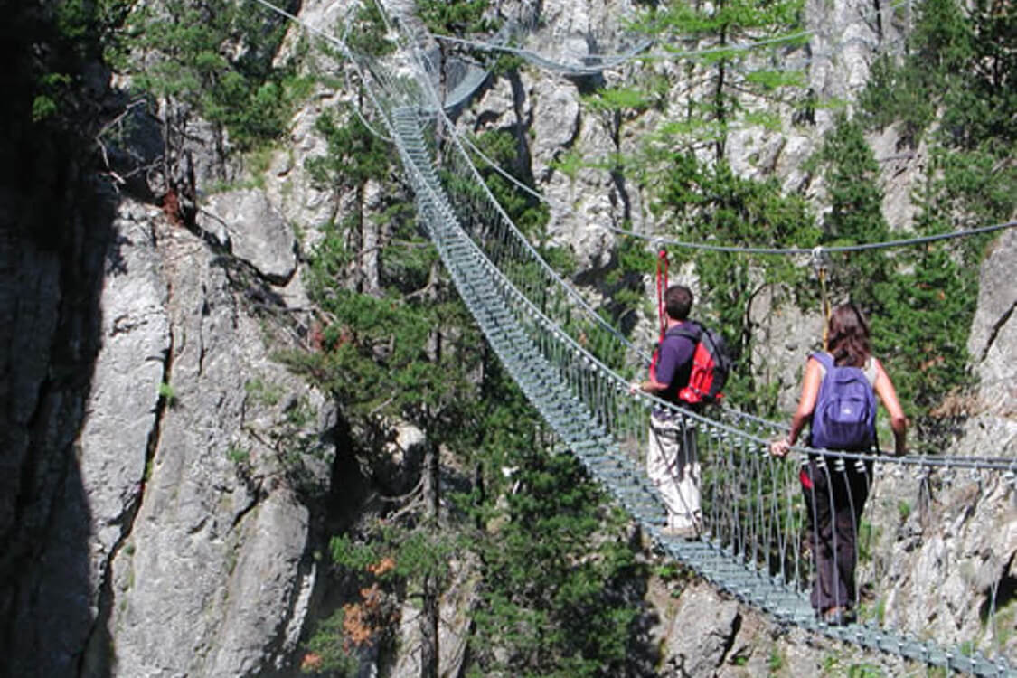 Per affrontare il ponte è obbligatorio indossare scarpe da trekking o scarponcini (suola antiscivolo) e abbigliamento comodo da montagna.