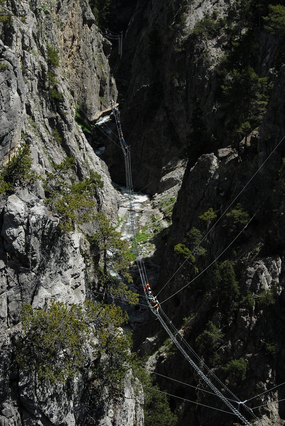 Il percorso classico prevede l’attraversamento di tre ponti successivi. Si inizia con il ponte principale che attraversa l’intera gola, seguito da un secondo ponte più breve e un terzo tratto. Il tempo di percorrenza medio è di circa 1 ora e 30 minuti.