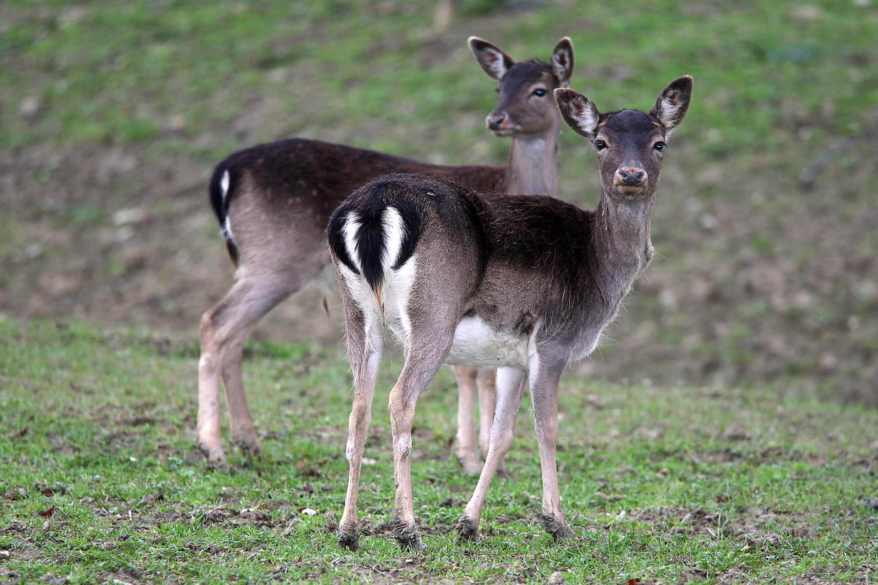 - Daino. Fa parte della famiglia dei cervidi ed è stato introdotto in Europa e Asia da parte dei Fenici, Romani e Normanni. I maschi sono dotati di corna molto più robuste rispetto a quelle delle femmine. Si ciba di frutti, erbe, germogli e funghi. Il gruppo è composto da un maschio e un harem di femmine.