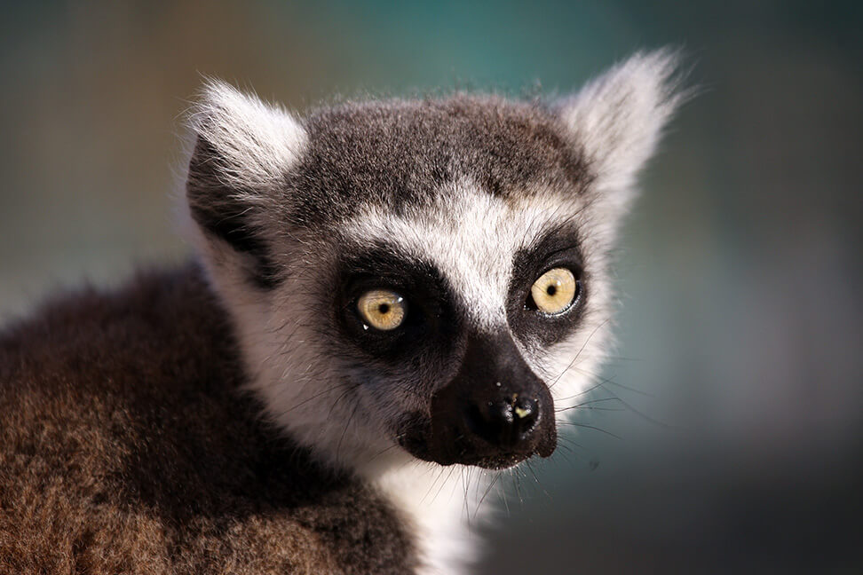 - Lemure Catta. Questa specie di lemure è sicuramente tra le più conosciute al mondo per via della sua lunga coda ad anelli bianchi e neri. Il lemure vive in Madagascar e segue una dieta onnivora. Nonostante sia un’eccellente arrampicatrice ama stare con i piedi a terra sotto alla luce del sole. È un’animale molto sociale formando gruppi molto numerosi, dove le femmine sono dominanti.