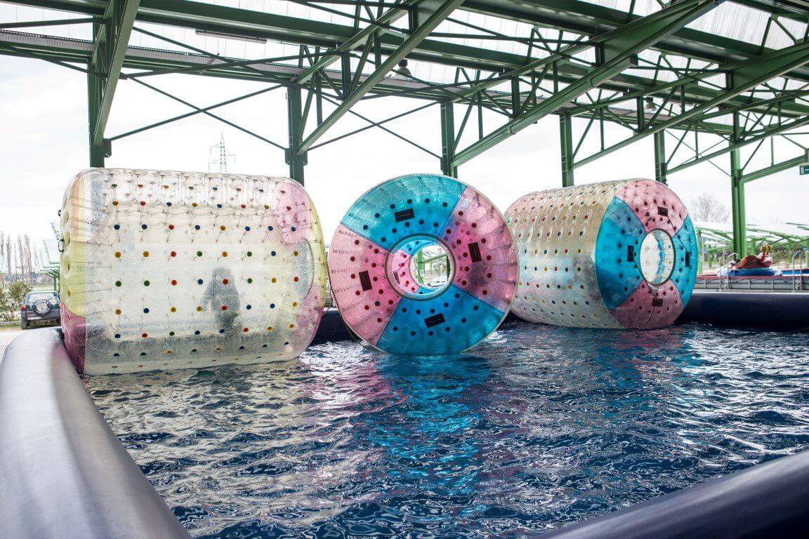 - Aquaroller. I bambini possono correre sul pelo dell’acqua all’interno dei rulli gonfiabili.